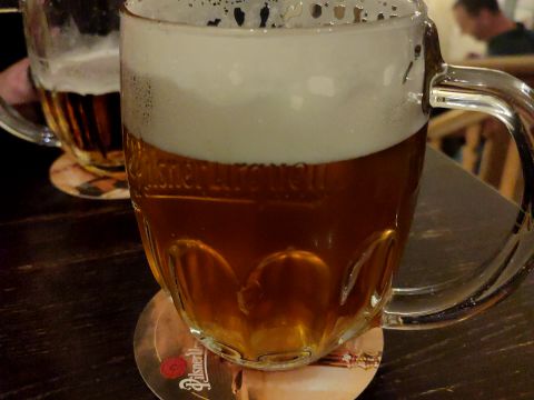 100% Recomendado. La cerveza Pilsner Urquell increíble, pedimos para comer PEČENÁ VEPŘOVÁ ŽEBÍRKA V BBQ MARINÁDĚ, 2 DRUHY OMÁČEK, PEČENÉ BRAMBORY, realmente exquisito y la atención buenísima 👏🏼